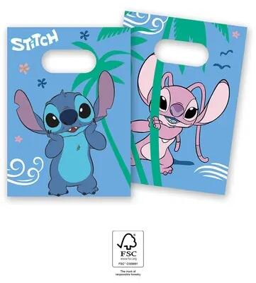 Ajándék parti táska - Stitch 4 db Remek ajándék táska Stitch karakter motívumával. Alkalmas arra, hogy egy kis figyelmet szenteljen vendégeinek az ünnepségen . Egy kis ajándéknak is alkalmas a szülinaposnak, aki szereti ezt a mesét. A táska motívuma remek választás a Stitch parti témájához. mennyiség: 4 db anyag: papír