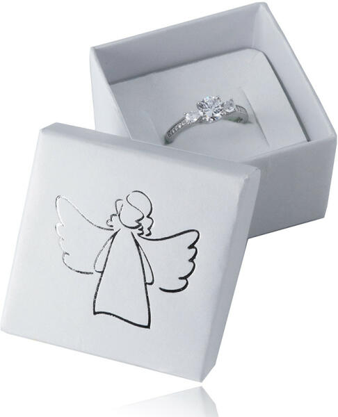 A fülbevalóhoz vagy egy medálhoz alkalmas papír ajándékdoboz teljes egészében fehér színű kivitelben készült. A doboztetőt egy szárnyas angyal ezüst színű körvonala díszíti. A belsejében egy fehér párna található, amelyet az ékszer számára kialakított bemetszésekkel láttak el. Egy gyűrűhöz, fülbevalóhoz vagy egy medálhoz alkalmas. Méret: 50 x 50 x 23 mmBelső
