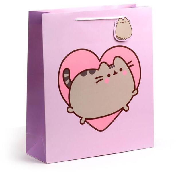 Pusheen cicás ajándéktáska, 40x35x12cm, extra nagy, macska szívvel