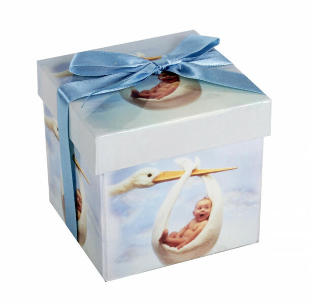 Babaváró ajándékdoboz fiús Baba születésekor vagy babalátogatóra nagyszerű választás ez a babaváró ajándékdobozka , mely kék színű masnival rendelkezik, így inkább fiús babaváró partikhoz ajánljuk. A dobozba kisebb játékot, ruhácskát vagy pénzt is beletehetsz, melynek biztosan örülni fog az ajándékozott! A doboz kilapított formában fog megérkezni hozzád, de a