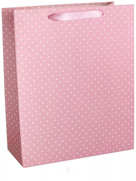 Ajándéktasak pöttyös barackrózsaszín Ez a táska tökéletes választás szolíd mintájával, inkább lányoknak ajánljuk rózsaszín alapja miatt. Mérete 26x32 cm Anyaga papír