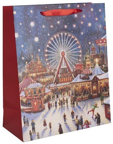 Dísztasak matt 31x42 karácsonyi vásár 31x42 cm-es méretű dísztasak anyag: 210 g/ m2 súlyú papír formátum: álló felület: matt szalag füles