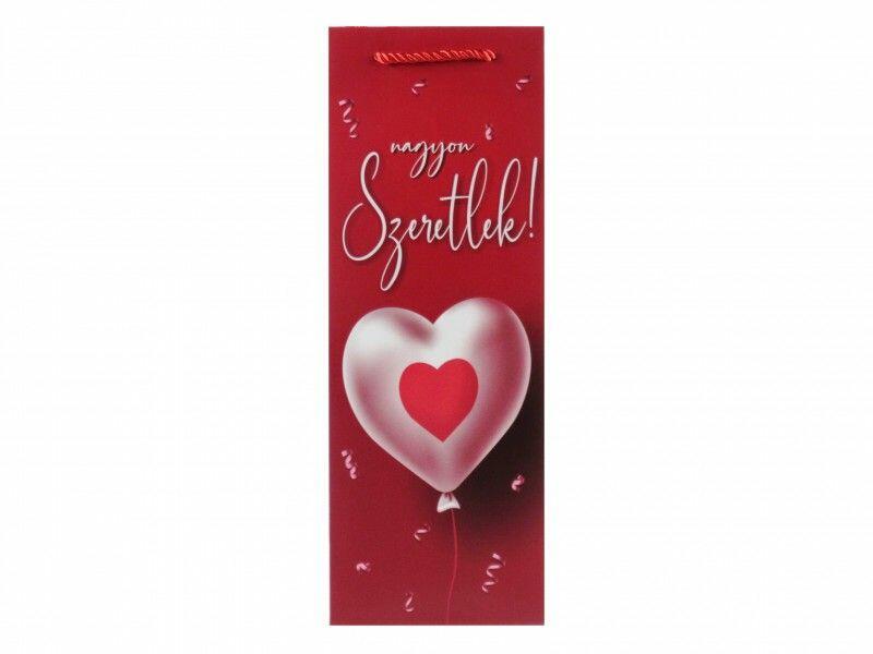 Ajándéktasak italos Nagyon szeretlek szíves lufis 12,5x10x34cm 02148 Befoglaló méretek 12.5x10x34 cmAnyaga papír