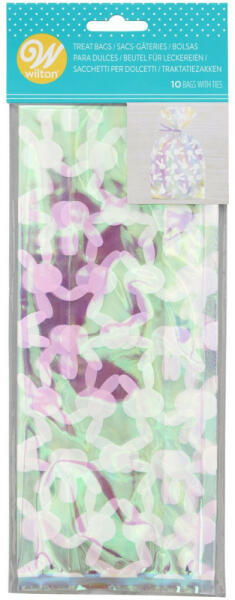 Wilton tasak, húsvéti nyuszi, 20 db Csomagolja be házi süteményeit és egyéb finomságait húsvéti mintás Wilton süteményzacskóiba!Tökéletes ajándékcsomagoláshoz. Méret: 11 x 23,5 cm. Tartalom: 10 db tasak és tasakzáró.