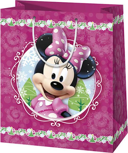 Minnie egér exkluzív közepes méretű ajándéktáska 18x10x23cm Hivatalos magyarországi forgalmazótól. Leírás: Minnie egér az egyik legrégebbi és egyben a mai napig az egyik legnépszerűbb Disney rajzfilmfigura, így remek választás minden kislánynak szánt ajándékhoz ez a tasak, amiről Minnie egér a szokásos pettyes masnijával mosolyog a gyerekekre. A közepes méretű, áll
