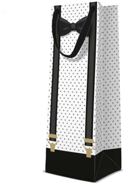 Az Elegant Man italtartó tasak a stílus és a praktikusság tökéletes ötvözése. Legyen szó születésnapról, névnapi köszöntőről, családi összejövetelről vagy üzleti vacsoráról, ez a dísztasak garantáltan elvarázsolja az ajándékozottat. A 12 cm x 10 cm x 37 cm-es mérete lehetővé teszi, hogy bármilyen kedvenc italát bemutassa benne, miközben a fekete-fehér színkomb
