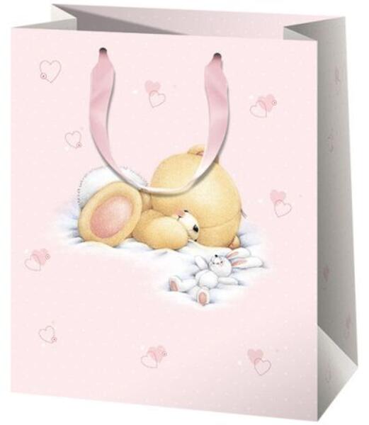 Exkluzív Forever Friends macis rózsaszín ajándéktáska 18x23x10cm Hivatalos magyarországi forgalmazótól. Leírás: Ha egy igazán cuki ajándéktáskában szeretnéd átadni az ünnepelt számára ajándékodat, akkor ez a halvány rózsaszín Forever Friends macis díszzacskó lesz a tökéletes választás. A táskán egy fekvő maci látható egy nyuszi társaságában, valamint szív m