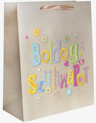 Dísztasak matt 11x14 cm drapp Boldog szülinapot felirattal méret: 11x14 cm Boldog szülinapot felirattal