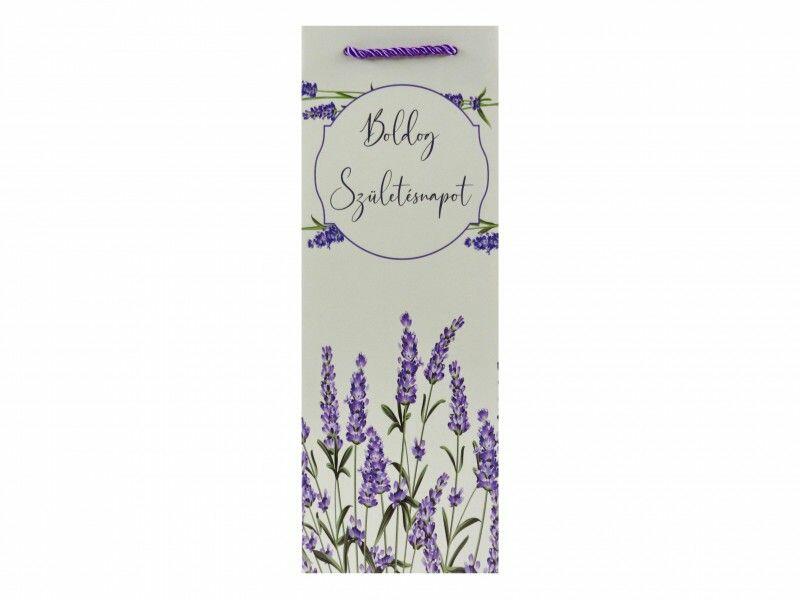 Ajándéktasak italos Boldog Születésnapot levendulás 12,5x10x34cm 02130 Befoglaló méretek 12.5x10x34 cmAnyaga papír