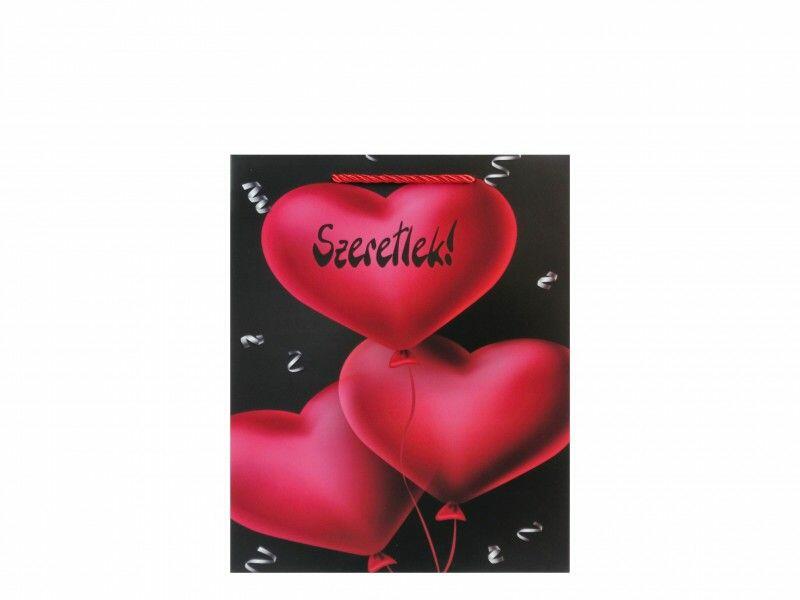 Ajándéktasak Szeretlek szíves fekete közép 18x10x23cm 02106 Befoglaló méretek 18x10x23 cmDísztasak MAnyaga papír