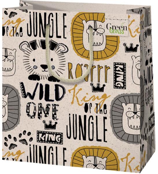 Green Grass Oroszlán mintás közepes méretű ajándéktáska 18x10x23cm Hivatalos magyarországi forgalmazótól. Leírás: Ez a közepes méretű ajándéktáska az öko-tudatos Green Grass szériához tartozik, melynek különlegessége az oroszlános mintázata. Az oroszlán, mint a dzsungel királya, az erő és bátorság szimbóluma, így ez a táska tökéletes választás azok számára