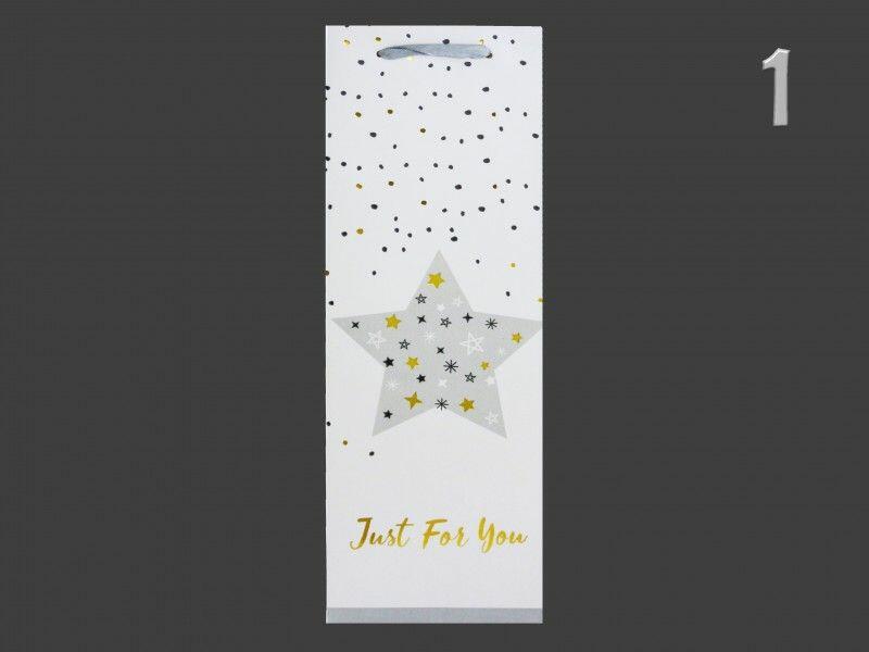 Ajándéktasak italos fehér/szürke/arany 12x9x36cm 4féle 02854 4 féle típus választhatóBefoglaló méretek 12x9x36 cmAnyaga papír