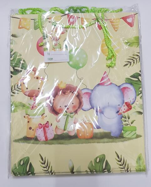 Zsiráf mintás nagy méretű ajándéktáska 27x14x33cm-es Hivatalos magyarországi forgalmazótól. Leírás: Ez a nagy méretű ajándéktáska kiváló választás minden olyan alkalomra, amikor szeretnénk valakit mosolyogva látni. A táska két cuki zsiráffal díszített, akik láthatóan örömteli interakcióban vannak egymással, ami még inkább hozzáad az ajándék pozitív hangulat