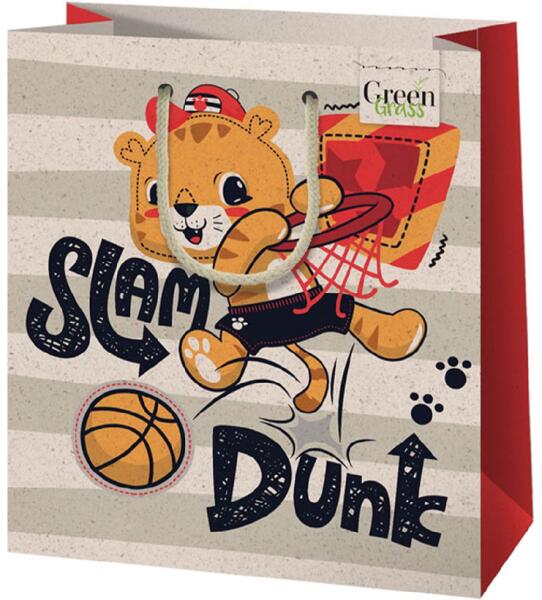 Green Grass Kosárlabdázó oroszlán mintás közepes méretű ajándéktáska 18x10x23cm Hivatalos magyarországi forgalmazótól. Leírás: Ez a közepes méretű Green Grass ajándéktáska a sportos állatok szerelmeseinek készült. A táska fő attrakciója egy lenyűgöző kosárlabdázó oroszlán minta, ami biztosan mosolyt csal mindenki arcára, aki megpillantja. A kosárlabda és az or