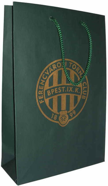 Dobd fel a Ferencvárosi TC-t támogató ajándékaidat ezzel a stílusos zöld dísztasakkal, amely a híres 'Fradi' címerrel díszített az elején. Kiváló minőségű poliészterből készült, ez a tasak nem csak tartós, de vizuálisan is lenyűgöző. Méretei (35 x 13 x 9 cm) lehetővé teszik, hogy különféle ajándékokat csomagolhass bele. A futballrajongók számára ez a tasak tö