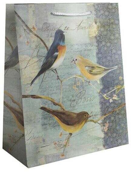 Ágon üldögélő madarak mintás dísztasak bájos választás ajándékcsomagoláshoz. A 23x18 cm-es méretének köszönhetően kisebb ajándékok stílusos és különleges csomagolására alkalmas. Tökéletes választás madaras témájú ajándékokhoz. Mérete: 23x18 cm (közepes méretű).