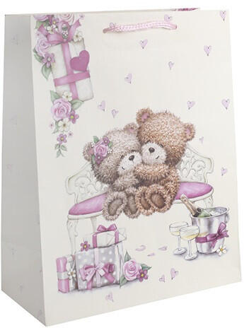 Dísztasak matt 26x32cm macipár " L " méretű dísztasak anyag: 210 g/m2 súlyú karton formátum: álló felület: matt fogantyú: szalagfül