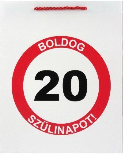 Ajándéktasak Boldog 20. Szülinapot nagy 26x12,5x32cm Termékjellemzők: Anyaga: papír Alkalom: Szülinap Kinek ajánlott: Bárkinek