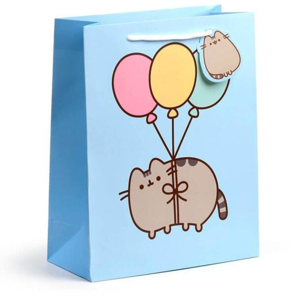 Pusheen cicás ajándéktáska, 33x26x12cm, nagy, macska lufikkal