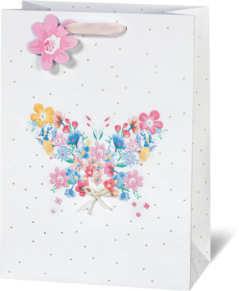Elegáns, dombornyomott virágmintával díszített ajándéktáskák, amelyek bármilyen alkalomra stílusos választást kínálnak. Letisztult fehér színe tökéletes ünnepi és hivatalos eseményekre is. Víztaszító belső réteggel ellátott papír táska virág és ajándék-kompozíciókhoz, mutatós virágkellék az ajándékozáshoz. Csomagolj magyar feliratos papír táskába, lépj