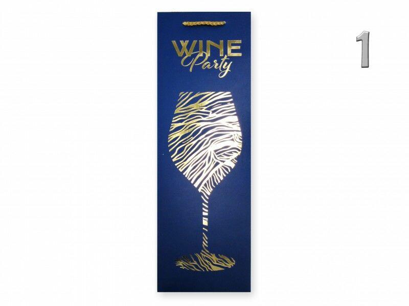 Ajándéktasak italos kék/arany 12x9x36cm 4féle 05060 Arany színű üveg és pohár mintás, kék italos ajándéktasak bármilyen alkalomra, 4 féle mintával. 4 féle típus választhatóBefoglaló méretek 12x9x36 cmAnyaga papír
