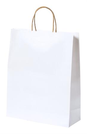 Újrahasznosított papírból készült bevásárlótáska természetes színű sodrott füllel. Anyaga: 100 g/m2 újrahasznosított papír. Szín: fehér Anyaga: Újrahasznosított papír (100 g/m2) Termékméret: 250 X 310 X 110 mm Emblémázását, feliratozását vállaljuk.