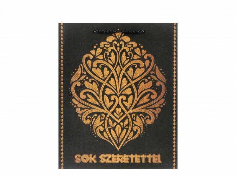 Ajándéktasak Sok Szeretettel fekete nagy 26x12,5x32cm 02089 Dísztasak LBefoglaló méretek 26x12.5x32 cmAnyaga papír