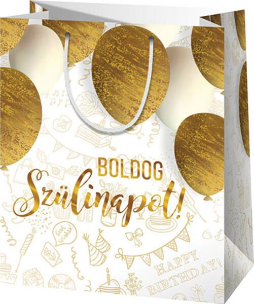 Boldog Szülinapot felirattal léggömbökkel ellátott nagy ajándéktáska 26x14x33cm Hivatalos magyarországi forgalmazótól. Leírás: Ha felköszönteni szeretnél valakit, nem hiányozhat ez a nagy méretű ajándéktáska. A léggömbök és a Boldog Szülinapot felirat ünnepélyes hangulatot hirdetnek. A nagy méretű, álló kialakítású ajándéktáska kiváló minőségű, a színek