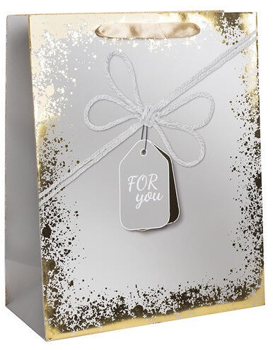 Dísztasak matt 26x32 cm For you arany/ezüst " L " méretű dísztasak anyag: 210 g/m2 súlyú karton formátum: álló felület: matt fogantyú: szalagfül