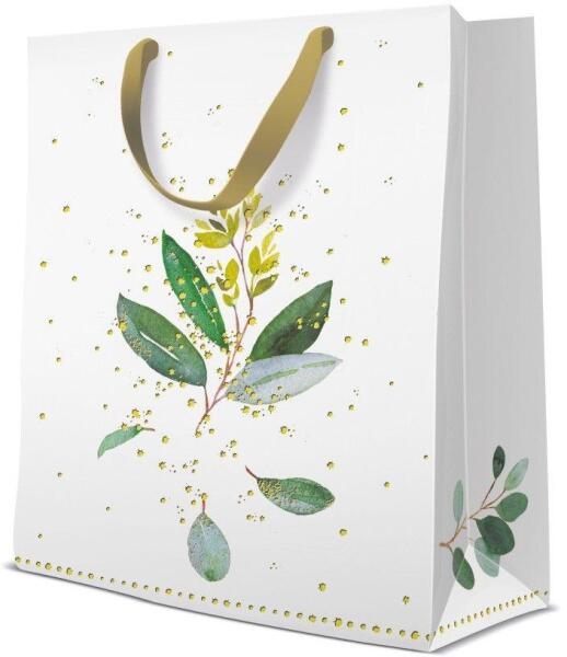 Készítse elő ajándékait stílusosan a PAW Premium Golden Eucalyptus ajándéktáskával! Ez a közepes méretű táska nemcsak praktikus, hanem elegáns megjelenésével bármilyen ajándékot különlegesséázsol. Az anyaga 100%-ban poliészter, így nemcsak tartós és strapabíró, de az ünnepi alkalmakhoz illeszkedő szemet gyönyörködtető mintájával is kiemelkedik. Az oldalán tal
