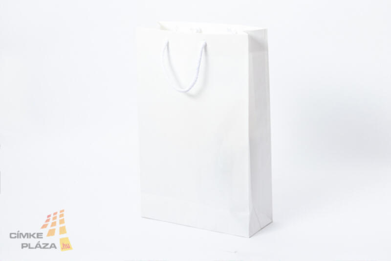 A zsinórfüles papírtáska 23x9x35 cm fehér színben talán az egyik legexkluzívabb típus a papírtáskák között. A letisztult fehér szín és az elegáns zsinór fül tökéletesen alkalmassá teszi ajándéktárgyak csomagolására. A nyomtatás nélküli papírtáskából akár egy darab is rendelhető, de nagyobb mennyiségben is elérhető készletről. A mérete 23x9x35cm, tehát na
