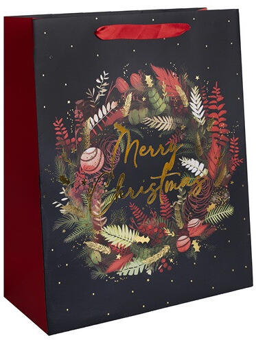 Dísztasak matt 26x32 cm fekete/piros koszorú 26x32 cm-es méretű dísztasak anyag: 210 g/ m2 súlyú papír formátum: álló felület: matt szalag füles