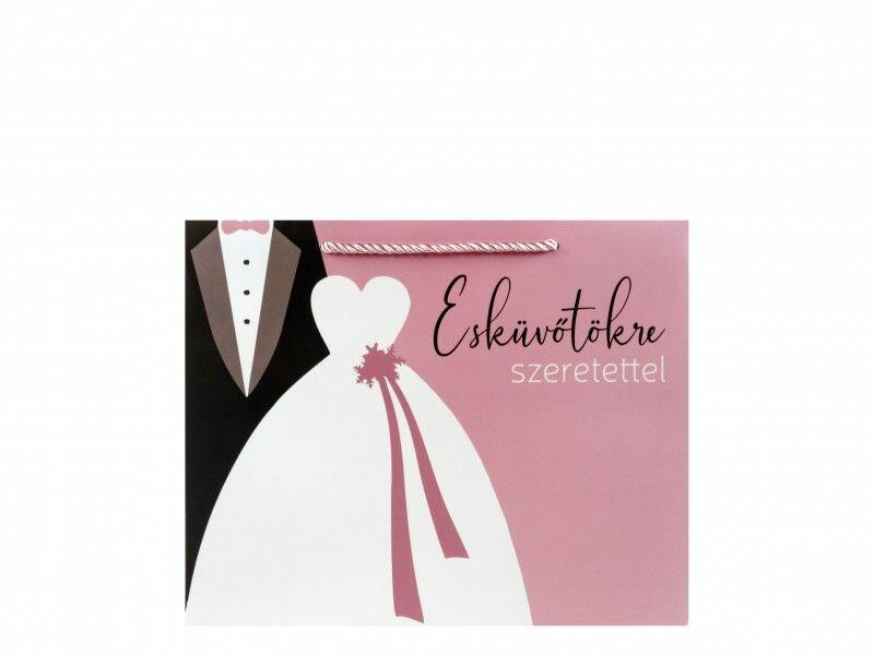 Ajándéktasak Esküvőtökre szeretettel közép 23x10x18cm 02120 Befoglaló méretek 23x10x18 cmDísztasak MAnyaga papír
