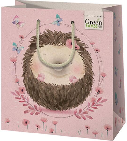 Green Grass Sünis közepes méretű exkluzív ajándéktáska 18x10x23cm Hivatalos magyarországi forgalmazótól. Leírás: Válassz egy olyan ajándéktasakot, ami nem csak aranyos, a cuki sünis mintája miatt, hanem a különleges készítési eljárásnak köszönhetően környezetbarát is. Kellemes illatú, kaszált fűből készült ajándéktasakok a környezettudatos csomagolás új gen