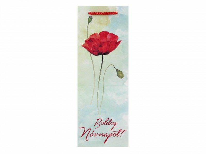 Ajándéktasak italos Boldog Névnapot pipacs 12,5x10x34,5cm 620460 Befoglaló méretek 12.5x10x34.5 cmAnyaga papír