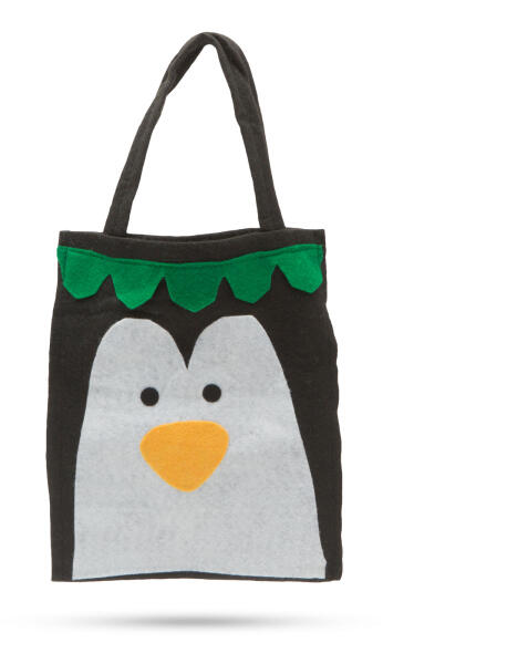 Ajándékozzon stílusosan! Karácsonyi, puha, szövet ajándéktáska, pingvin figurával az elején. Ideális lehet kisebb ajándékok átadására. Fekete alap, pingvin mintával Fekete táskafül Méret:24 x 20 cm