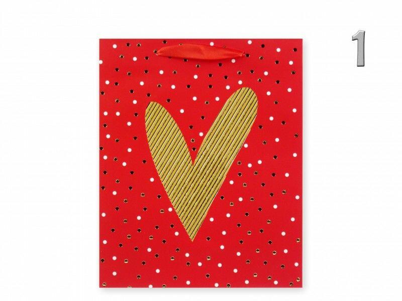 Ajándéktasak szíves pöttyös nagy 26x10x32cm 4féle 02944 4 féle típus választhatóBefoglaló méretek 26x10x32 cmDísztasak LAnyaga papír
