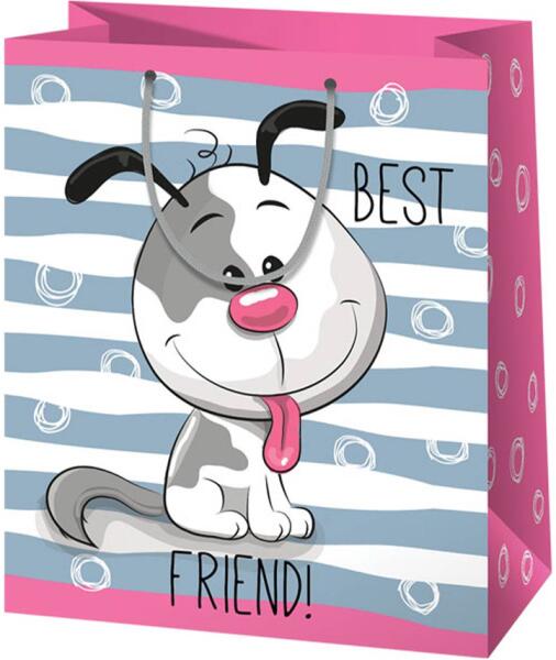 Kutyusos közepes méretű ajándéktáska 18x23x10cm-es Hivatalos magyarországi forgalmazótól. Leírás: Egy kedves és meghitt közepes méretű ajándéktáska, amely minden kutyarajongó szívéhez közel áll. A táska elején egy aranyos, mosolygós kutya képe díszeleg, amely azonnal melegséget és örömet áraszt. Az ajándékot adó és kapó egyaránt elolvad a vidám és bájos mi
