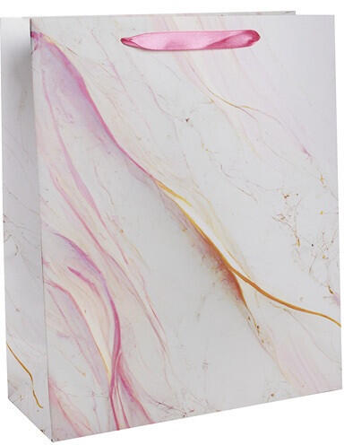 Dísztasak matt 18x23 cm rózsaszín márványos " M " méretű dísztasak anyag: 210 g/m2 súlyú papír formátum: álló felület: matt fogantyú: szalagfül