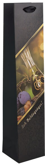 Iris papírtasak pálinkás matt, "sok boldogságot" felirat, szilvás 8*38*8 cm PAPÍRTASAK PÁLINKÁS MATT, "SOK BOLDOGSÁGOT" FELIRAT, SZILVÁS 8*38*8 CM