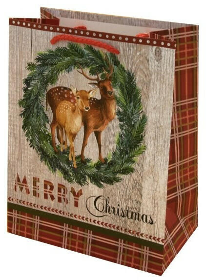 Dísztasak CREATIVE Luxury M 18x23x10 cm karácsonyi kockás mintás matt zsinórfüles Papír ajándéktasak 210 gr-os kraft papírból, matt felületű. 12 db/csomag, 4 minta/csomag. A minta nem választható.