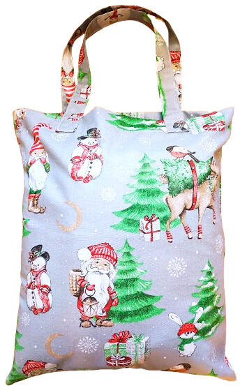 Karácsonyi pamut Ajándék Táska - Szürke színű alapon Hóember - Hógömb mintával. Környezetbarát, természetes alapanyagú, textil táska. Szabásból adódóan a minta elhelyezkedése eltérhet kissé a képen látottaktól. Praktikus, környezettudatos választás a karácsonyi ajándékok csomagolásához - ajándék átadáshoz. Karácsonyi ráhangolódás jegyében használhatod aj