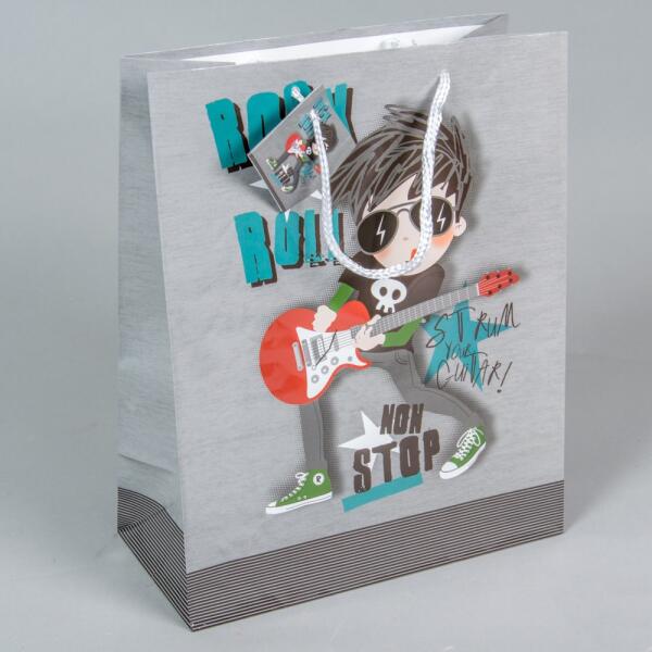 Papír tasak kis csávó gitárral 18x23 cm. Ajándékot adni és kapni mindig öröm. Nálunk minden alkalomhoz eltérő mintájú ajándéktasakok közül válogathatsz, hogy a csomagolás a legmegfelelőbb legyen, bármilyen esemény is közelegjen. Esküvő, szülinap, ballagás? Nézz körül.