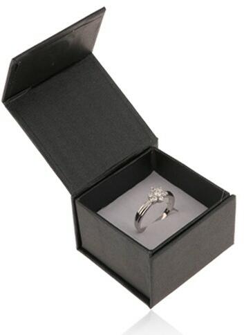 A papírdoboznak gyűrűre vagy fülbevalóra fekete színe van, enyhe gyöngyházfényű visszfénnyel. A fedélben egy mágnes van elhelyezve. A doboz belsejében egy sima, fehér párna található, bemetszésekkel az ékszerre. Alkalmas gyűrűre vagy fülbevalóra. Méretek: 52 x 52 x 35 mmBelső méretek: 47 x 47 mm