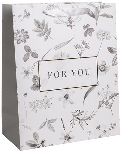 Dísztasak matt 11x14 cm For you szürke/arany " M " méretű dísztasak anyag: 210 g/m2 súlyú papír formátum: álló felület: matt fogantyú: szalagfül