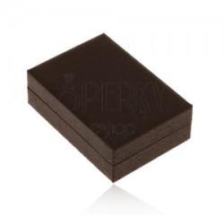 A doboznak fülbevalóra vagy nyakláncra matt, sötétbarna felülete van, amelyet apró, fekete bemetszések díszítenek. A felület a keménységével, színével és mintájával fára emlékeztet. A doboz belsejében egy sima, barna párna található, bemetszésekkel az ékszerre. Alkalmas fülbevalóra, nyakláncra vagy láncra. Méretek: 45 x 65 x 20 mmBelső méretek: 40 x 55 mm