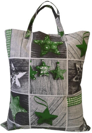 Karácsonyi pamut ajándék táska keretben zöld színű karácsonyi mintával, szürke színű alapon. Környezetbarát, természetes alapanyagú, textil táska. Szabásból adódóan a minta elhelyezkedése eltérhet kissé a képen látottaktól. Praktikus, környezettudatos választás a karácsonyi ajándékok csomagolásához - ajándék átadáshoz. Karácsonyi ráhangolódás jegyében ha