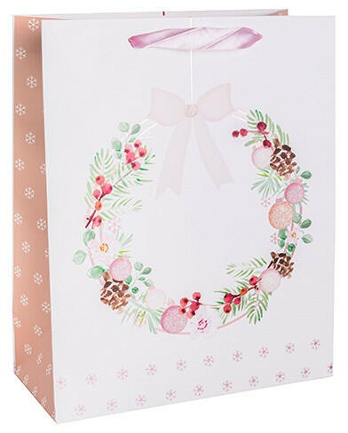 Dísztasak matt karácsonyi 18x23 cm rózsaszín koszorú Méret: 18x23 cm