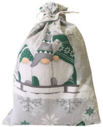 Textil Mikulás zsák - Karácsonyi ajándék tasak szürke színű alapon klasszikus zöld karácsonyi manó mintával. Édességgel, gyümölccsel, apró ajándékkal tölthetünk meg Mikulás napján, illetve csomagolhatunk bele ajándékot karácsonykor. Uzsonnás tasakként akár ünnepek után is hasznosítható! Egy rétegű, nem bélelt, 100% pamut alapanyagból készült, húzózsinórral