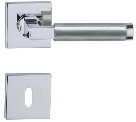 A négyzetrozetta, a króm és a szatén nikkel anyagok vegyítése teszi különleges, modern megjelenésűvé a kilincset.